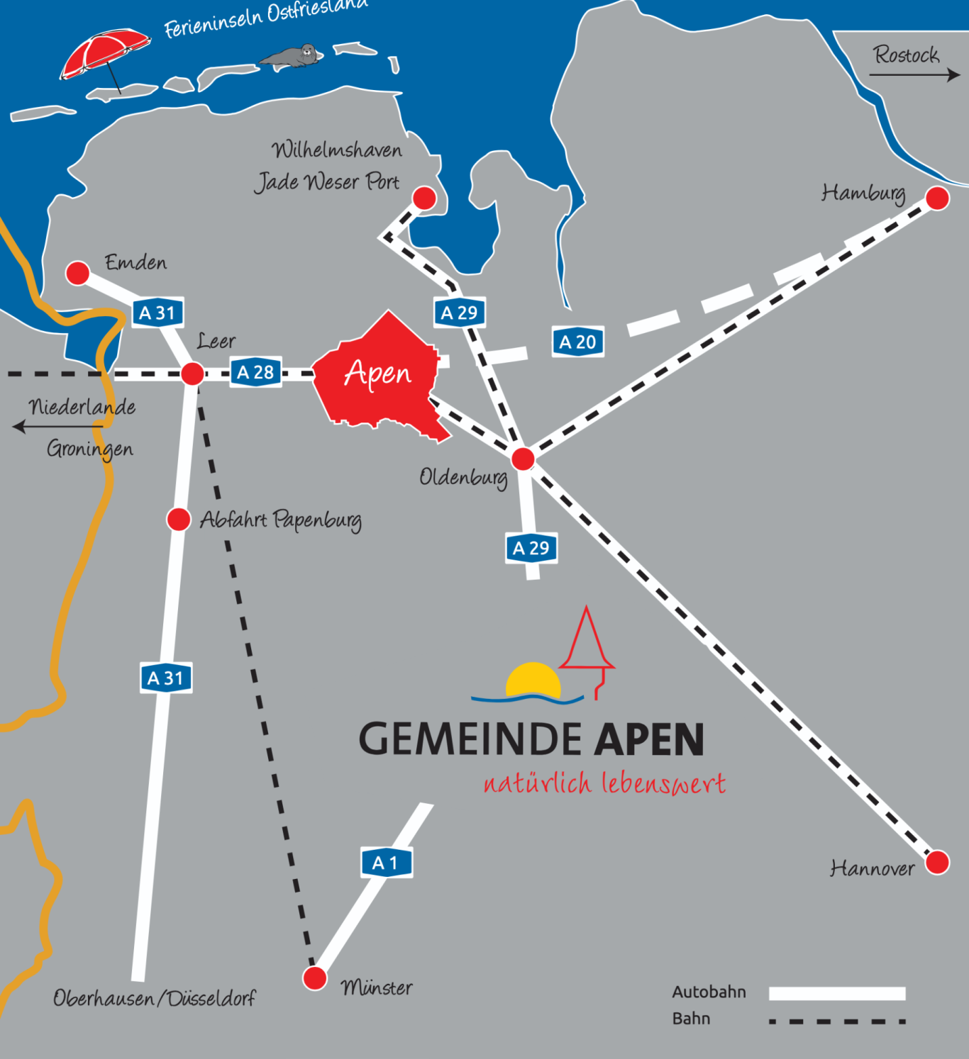 The community of Apen has about 12.000 inhabitants. Apen belongs to the county of Ammerland and is located between the cities of Leer and Oldenburg in the northwestern part of Germany, close to the Autobahn A28. Our community is next to the eastfrisian county of Leer / Ostfriesland.